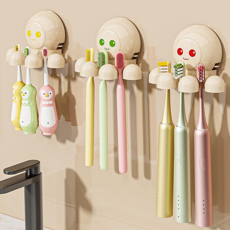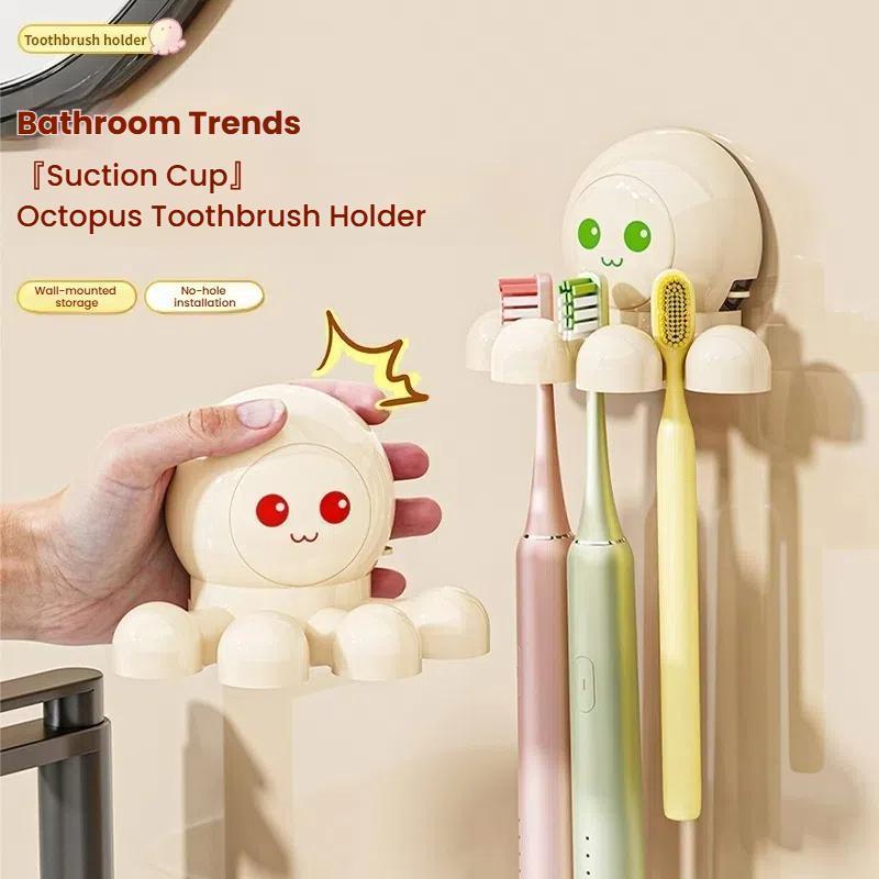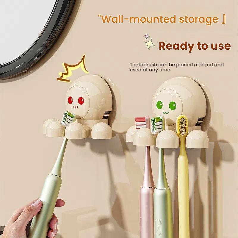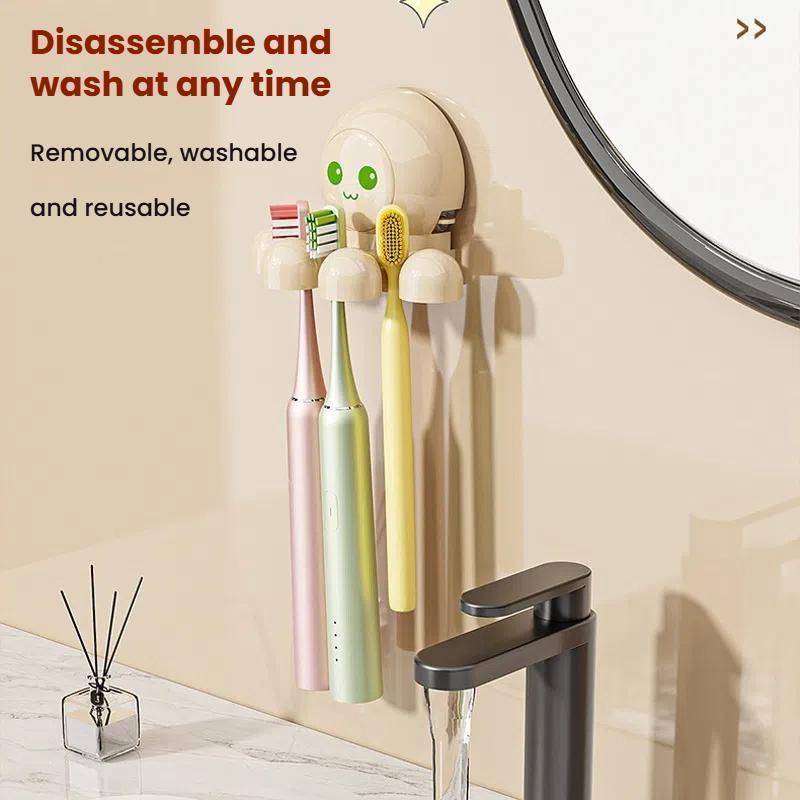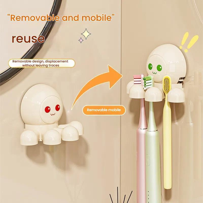 2. Suction cup octopus toothbrush holder, wall mounted storage, hole-free installation