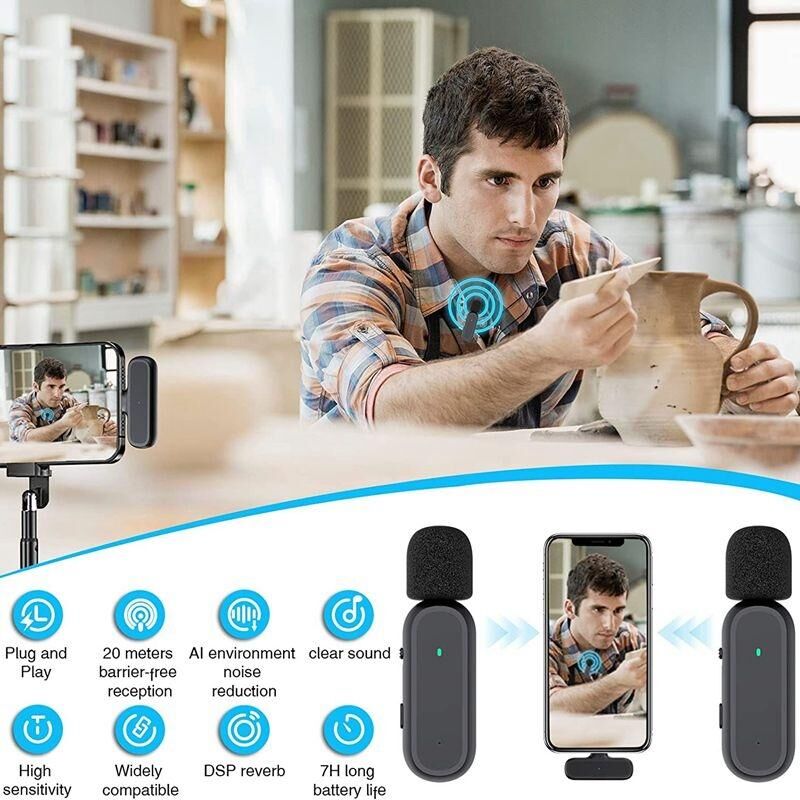 4. Fast charging and long battery life: Each lavalier microphone has a battery capacity of 110mAh and can work for 9 hours. Equipped with an 800mAh battery charging box, it can be stored and charged anytime, anywhere. The charging case can charge a single microphone 7 times, and it takes 1.5 hours to fully charge. You can also charge the device through the receivers lighting port while recording. Dont worry about powering off your device while recording.