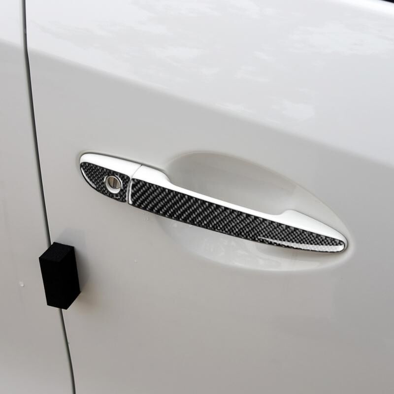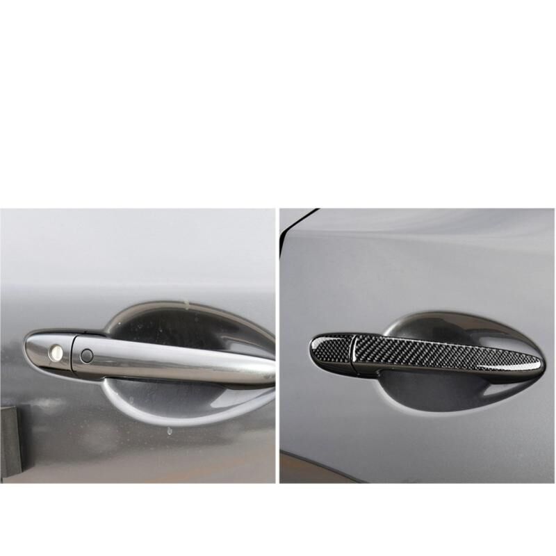 One Set Car Carbon Fiber Outside Door Handle without Smart Hole Decorative Sticker for Mazda CX-5 2017-2018, Right Drive