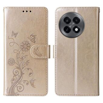 For OnePlus 13R / Ace 5 / Ace 5 Pro Embossed Butterfly Flowers Leather Phone Case(Gold)