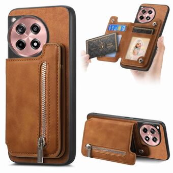For OnePlus Ace 3 5G / 12R 5G Retro MagSafe Zipper Wallet Card Bag Back Phone Case(Brown)