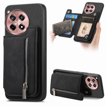 For OnePlus Ace 3 5G / 12R 5G Retro MagSafe Zipper Wallet Card Bag Back Phone Case(Black)