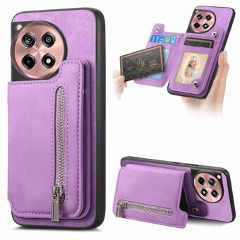 For OnePlus Ace 3 5G / 12R 5G Retro MagSafe Zipper Wallet Card Bag Back Phone Case(Purple)