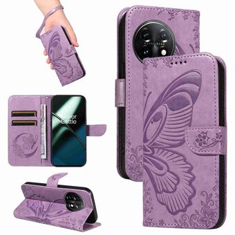 For OnePlus 11 5G Swallowtail Butterfly Embossed Leather Phone Case(Purple)