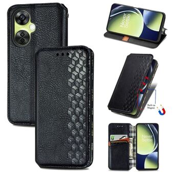 For OnePlus Nord CE 3 Lite Cubic Grid Pressed Magnetic Leather Phone Case(Black)