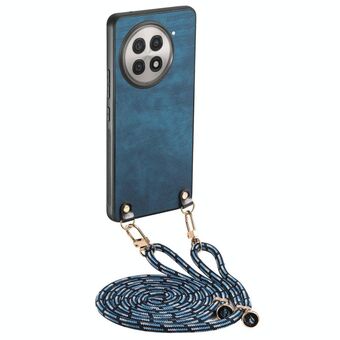 For OnePlus 13R 5G Vintage Leather PC Back Cover Phone Case with Crossbody Strap(Blue)