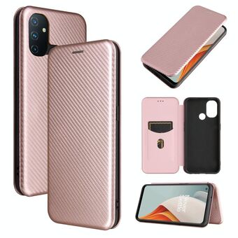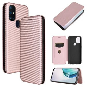 For OnePlus Nord N100 Carbon Fiber Texture Horizontal Flip TPU + PC + PU Leather Case with Card Slot(Pink)