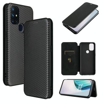 For OnePlus Nord N100 Carbon Fiber Texture Horizontal Flip TPU + PC + PU Leather Case with Card Slot(Black)