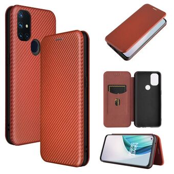 For OnePlus Nord N100 Carbon Fiber Texture Horizontal Flip TPU + PC + PU Leather Case with Card Slot(Brown)