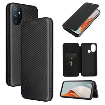 For OnePlus Nord N10 5G Carbon Fiber Texture Horizontal Flip TPU + PC + PU Leather Case with Card Slot(Black)