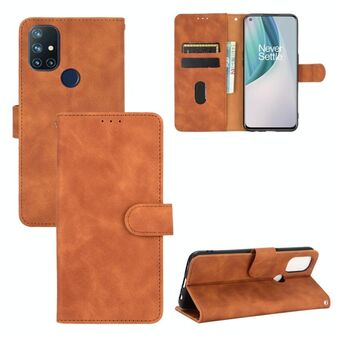 For OnePlus Nord N100 Solid Color Skin Feel Magnetic Buckle Horizontal Flip Calf Texture PU Leather Case with Holder & Card Slots & Wallet(Brown)