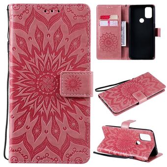 For OnePlus Nord N100 Sun Embossing Pattern Horizontal Flip Leather Case with Card Slot & Holder & Wallet & Lanyard(Pink)