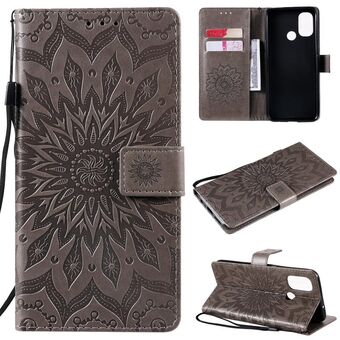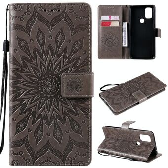For OnePlus Nord N100 Sun Embossing Pattern Horizontal Flip Leather Case with Card Slot & Holder & Wallet & Lanyard(Grey)
