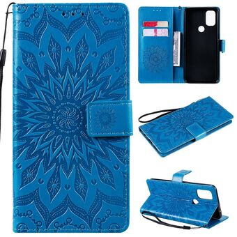 For OnePlus Nord N100 Sun Embossing Pattern Horizontal Flip Leather Case with Card Slot & Holder & Wallet & Lanyard(Blue)