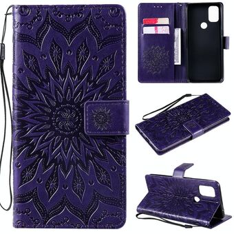 For OnePlus Nord N100 Sun Embossing Pattern Horizontal Flip Leather Case with Card Slot & Holder & Wallet & Lanyard(Purple)