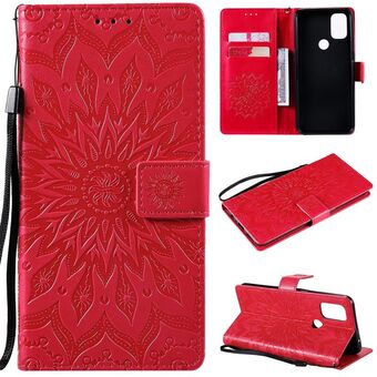 For OnePlus Nord N100 Sun Embossing Pattern Horizontal Flip Leather Case with Card Slot & Holder & Wallet & Lanyard(Red)