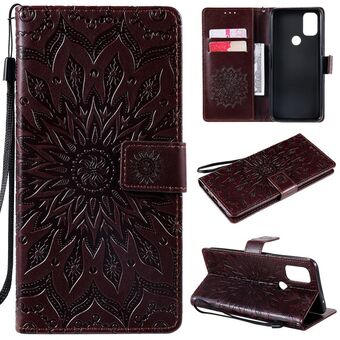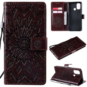 For OnePlus Nord N100 Sun Embossing Pattern Horizontal Flip Leather Case with Card Slot & Holder & Wallet & Lanyard(Brown)