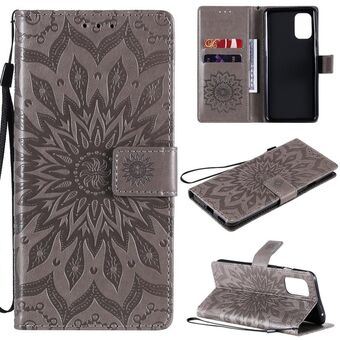 For OnePlus 8T Sun Embossing Pattern Horizontal Flip Leather Case with Card Slot & Holder & Wallet & Lanyard(Grey)