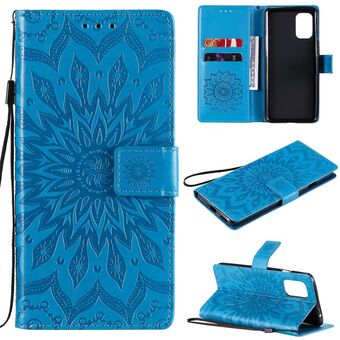 For OnePlus 8T Sun Embossing Pattern Horizontal Flip Leather Case with Card Slot & Holder & Wallet & Lanyard(Blue)