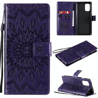 For OnePlus 8T Sun Embossing Pattern Horizontal Flip Leather Case with Card Slot & Holder & Wallet & Lanyard(Purple)
