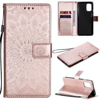 For OnePlus 8T Sun Embossing Pattern Horizontal Flip Leather Case with Card Slot & Holder & Wallet & Lanyard(Rose Gold)