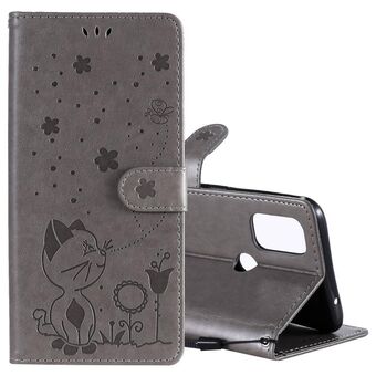 For OnePlus Nord N10 5G Cat Bee Embossing Pattern Shockproof Horizontal Flip Leather Case with Holder & Card Slots & Wallet(Grey)