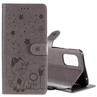 For OnePlus 8T Cat Bee Embossing Pattern Shockproof Horizontal Flip Leather Case with Holder & Card Slots & Wallet(Grey)