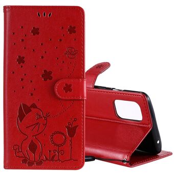 For OnePlus 8T Cat Bee Embossing Pattern Shockproof Horizontal Flip Leather Case with Holder & Card Slots & Wallet(Red)