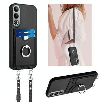Για OnePlus Nord CE4 / OPPO K12 5G R20 Crossbody σχοινί δαχτυλίδι κάρτας κάτοχος τηλέφωνο υπόθεση (μαύρο)