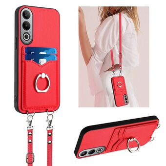 Για OnePlus Nord CE4 / OPPO K12 5G R20 Crossbody σχοινί δαχτυλίδι κάρτας κάτοχος τηλέφωνο υπόθεση (κόκκινο)