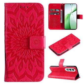 Για OnePlus Nord CE4 ανάγλυφο ηλιοτρόπιο μοτίβο Flip υπόθεση τηλεφώνου δέρμα (κόκκινο)