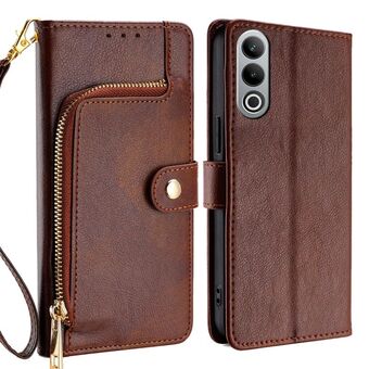 Για OnePlus Nord CE4 φερμουάρ τσάντα δερμάτινη θήκη τηλεφώνου (καφέ)