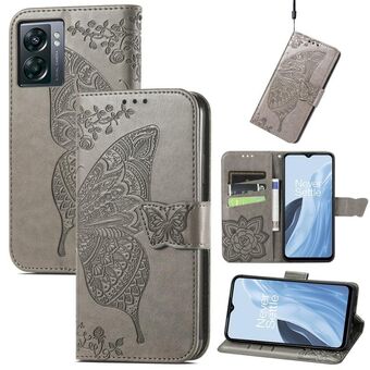 For OnePlus Nord N300 Butterfly Love Flower Embossed Flip Leather Phone Case(Gray)