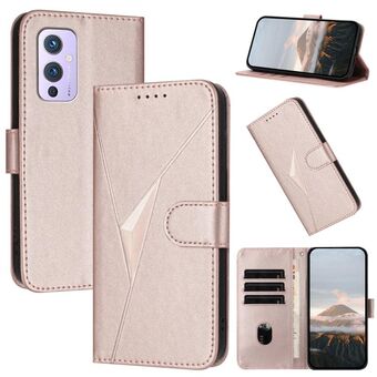 For OnePlus 9 Triangle Pattern Buckle Clasp Leather Phone Case(Gold)