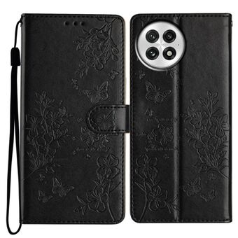 For OnePlus 13 Butterflies and Flowers Leather Phone Case(Black)