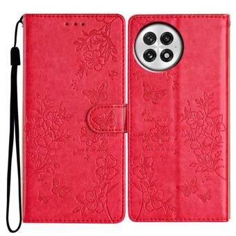 For OnePlus 13 Butterflies and Flowers Leather Phone Case(Red)