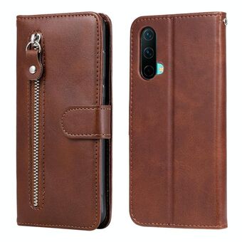 Για OnePlus Nord CE 5G μόδας μοσχάρι υφή φερμουάρ οριζόντια Flip δερμάτινη θήκη με Stand & υποδοχές για κάρτες & λειτουργία πορτοφόλι (καφέ)