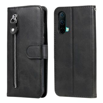 Για OnePlus Nord CE 5G μόδας μοσχάρι υφή φερμουάρ οριζόντια Flip δερμάτινη θήκη με Stand & υποδοχές για κάρτες & λειτουργία πορτοφόλι (μαύρο)