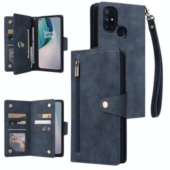 Για OnePlus Nord N10 5G Rivet πόρπη 9 κάρτες τρεις φορές δερμάτινη θήκη τηλεφώνου (μπλε)