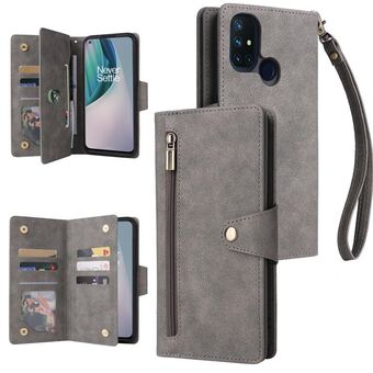 Για OnePlus Nord N10 5G Rivet πόρπη 9 κάρτες τρεις φορές δερμάτινη θήκη τηλεφώνου (γκρι)