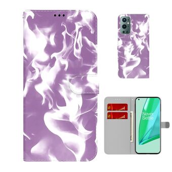Για OnePlus 9 Pro Cloud Fog μοτίβο οριζόντια Flip δερμάτινη θήκη με κάτοχο & υποδοχή για κάρτες & πορτοφόλι (μωβ)