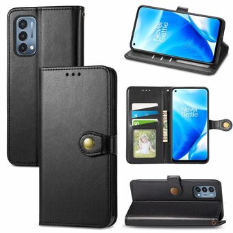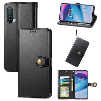 Για OnePlus Nord CE 5G Αμιγές χρώμα δερμάτινη θήκη τηλεφώνου πόρπη με κορδόνι & πλαίσιο φωτογραφιών & υποδοχή κάρτας & πορτοφόλι & λειτουργία Stand (Μαύρο)
