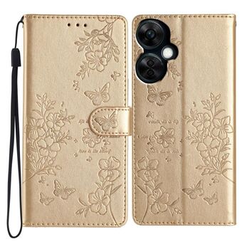 For OnePlus Nord CE 3 Lite 5G Butterflies and Flowers Leather Phone Case(Gold)