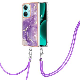 Θήκη τηλεφώνου OnePlus Nord CE3 Electroplating Marble IMD διπλής όψης με κορδόνι (Μωβ 002)