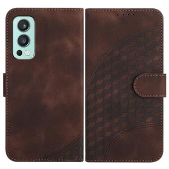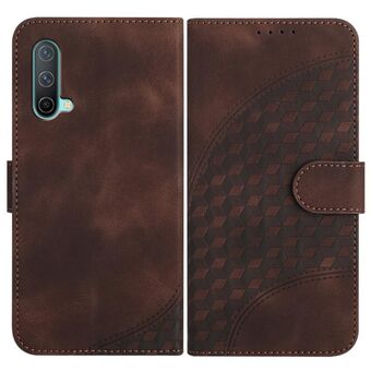 Θήκη δερμάτινη για OnePlus Nord CE 5G με ανάγλυφο σχέδιο κεφαλής ελέφαντα και κορδόνι (Καφέ)