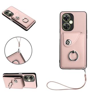 Για OnePlus Nord CE 3 Lite Οργάνου κάρτα τσάντα δαχτυλίδι κάτοχος PU υπόθεση τηλεφώνου με κορδόνι (ροζ)