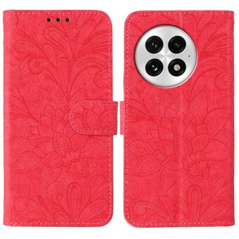 For OnePlus 13 Lace Flower Embossing Flip Leather Phone Case(Red)