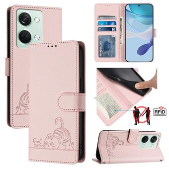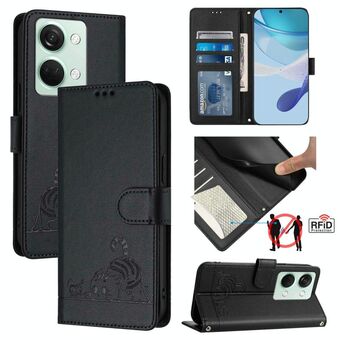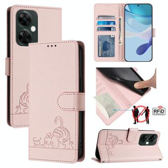 For OnePlus Nord CE3 5G India Cat Rat Embossed Pattern RFID Leather Phone Case with Lanyard(Purple)