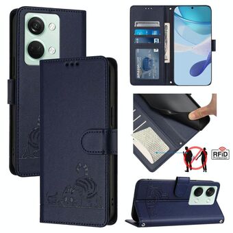For OnePlus Nord CE3 5G India Cat Rat Embossed Pattern RFID Leather Phone Case with Lanyard(Blue)