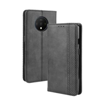 Για το OnePlus 7T Μαγνητική Θήκη Βουκλέτα Ρετρό με Υφή Crazy Horse Οριζόντια Δερμάτινη Θήκη, με Στήριξη & Θήκες Καρτών & Κορνίζα Φωτογραφιών (Μαύρο)
